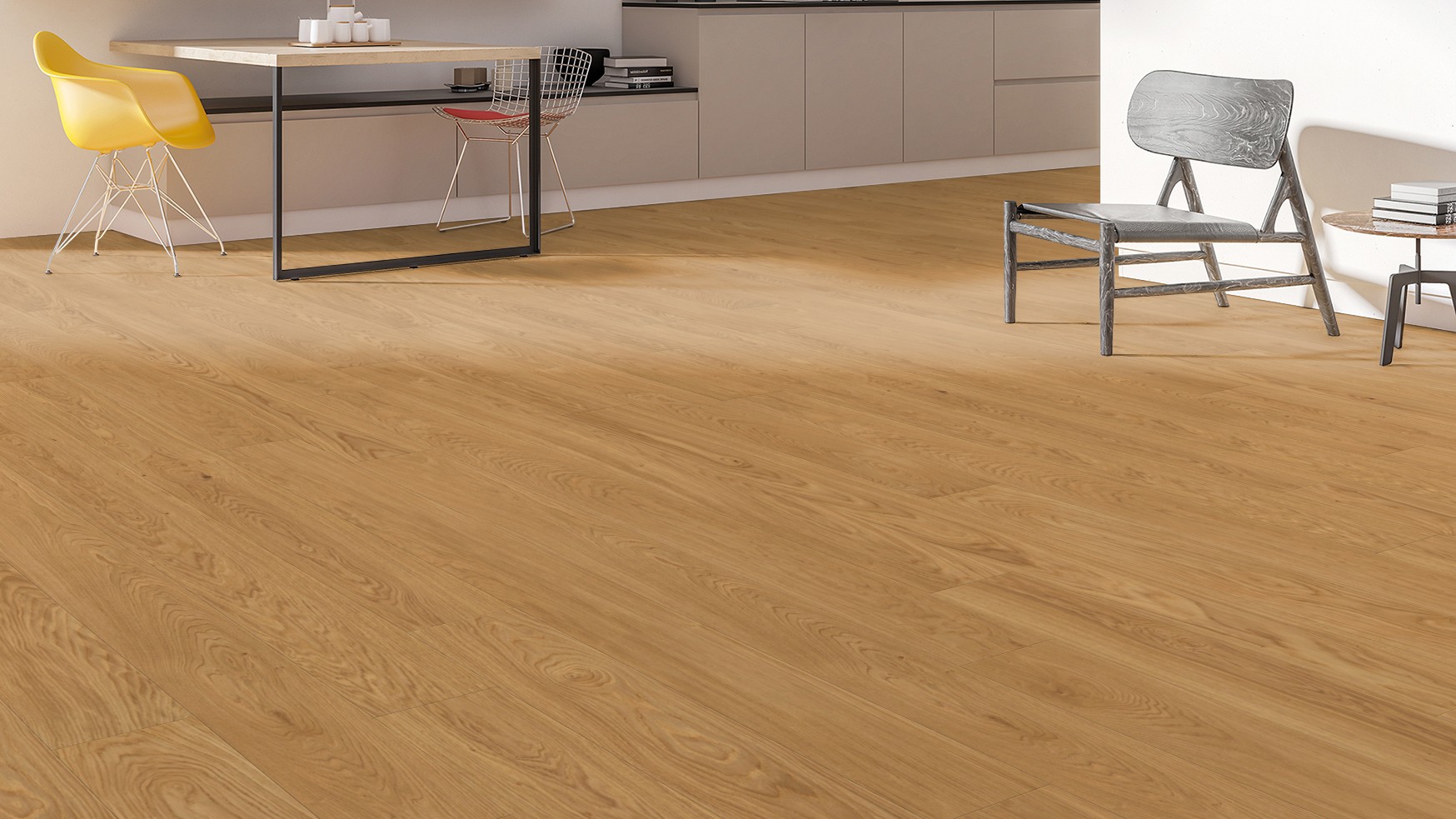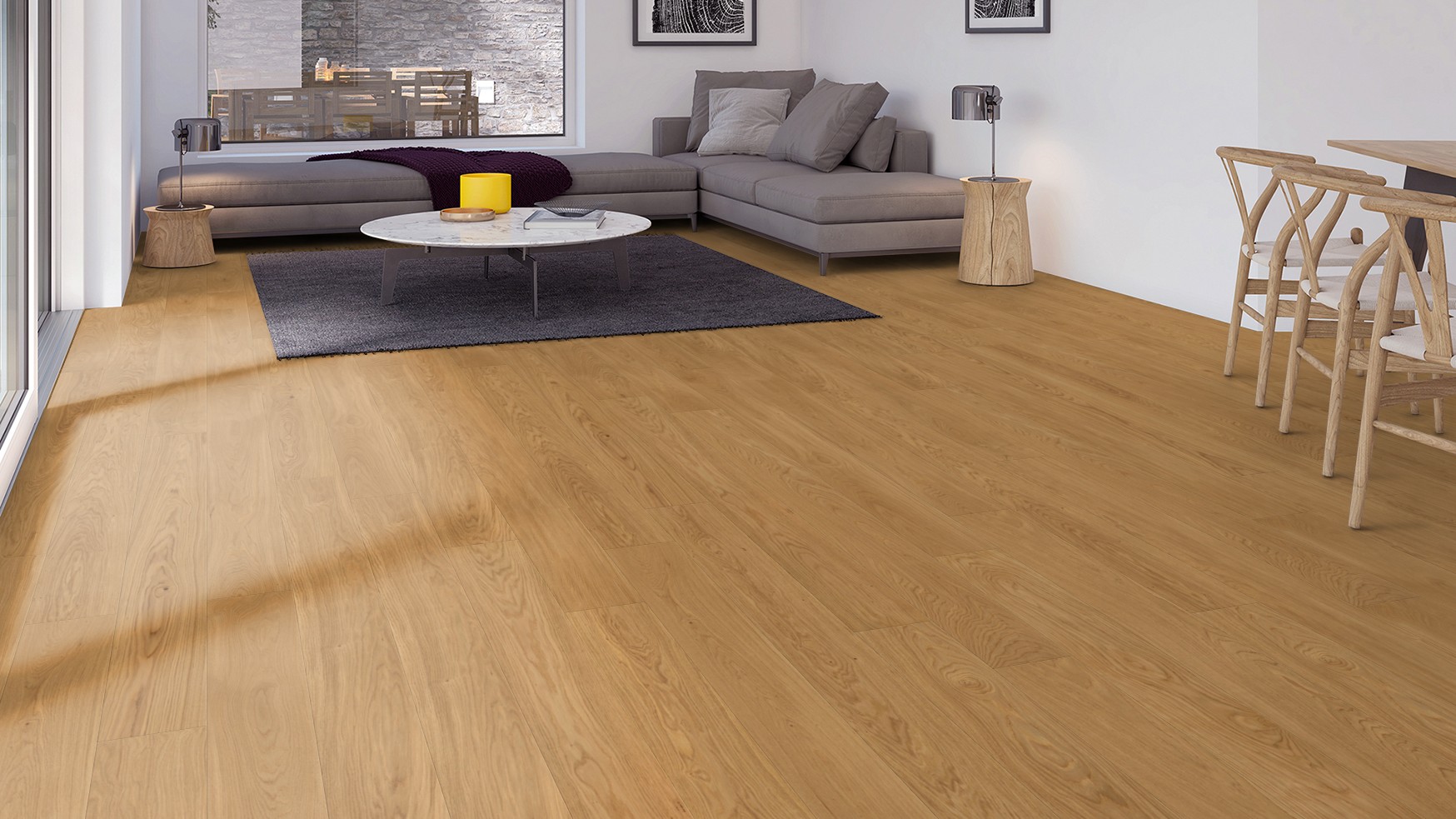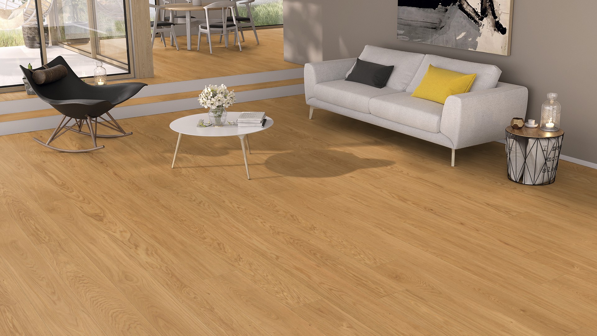 Letisztult megjelenésű tölgy svédpadló egységes, nyugodt NATUR calm válogatással.